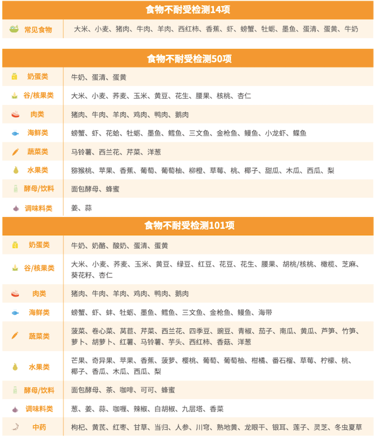对包括奶蛋类、海鲜、蔬菜、水果、谷物、酵母/饮料、调味品、中药在内的中国人食谱中经常出现的食物进行IgG抗体检测(食物不耐受检测),并依据检测结果,为受检者制定最适合他/她的饮食方案,依据方案调整饮食习惯,便能在3~6个月内有效改善甚至消除慢性疾病症状,从而提高受检者的生活质量。