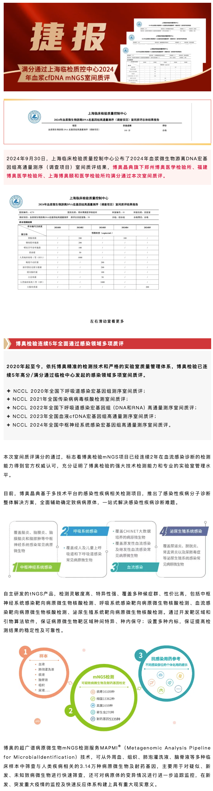质量捷报丨K8凯发国际旗下三家检验所满分顺利获得上海临检质控中心2024年血浆cfDNA mNGS室间质评!
