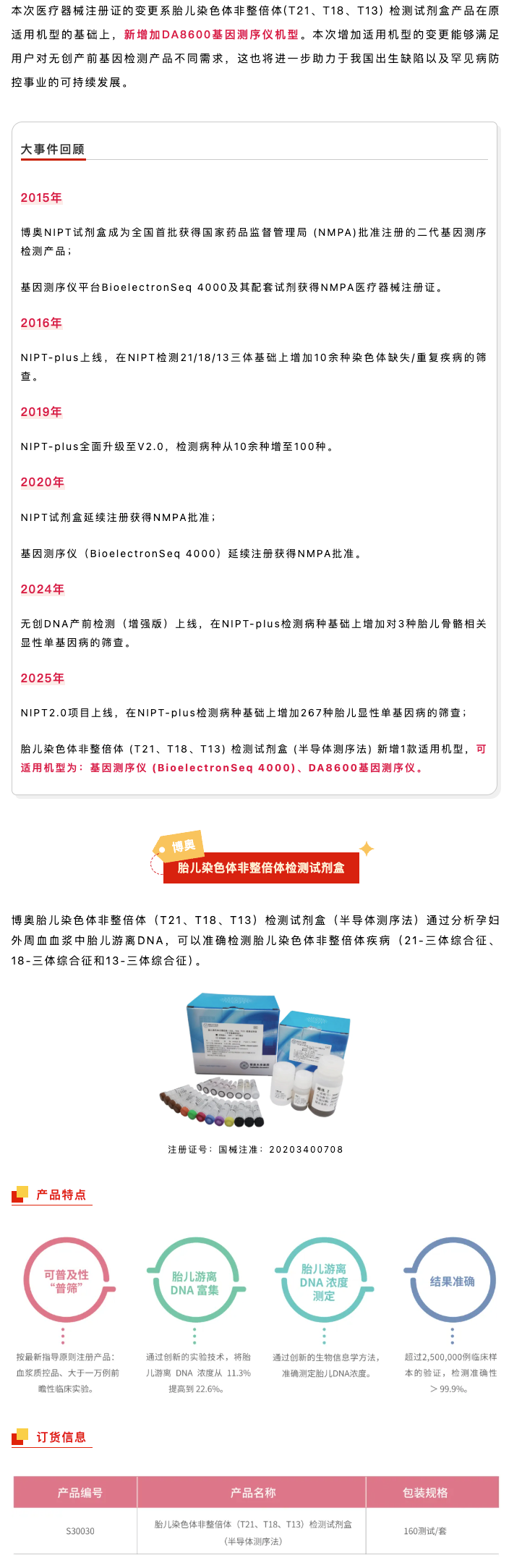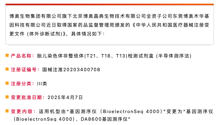 喜讯丨博奥NIPT试剂盒适用机型拓项资质审批顺利获得!