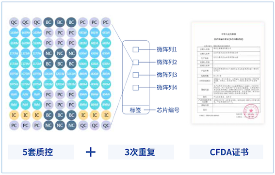 抗栓治疗用药相关6个基因位点多态性检测试剂盒(微阵列芯片法)采用多重等位基因序列特异性PCR结合通用微阵列芯片(Allele-Specific PCR-based Universal Array,ASPUA)方法,对人基因组DNA中VKORC1、CYP2C9、CYP4F2、GGCX、CYP2C19和CYP3A4这6个基因的9个多态性位点进行检测。